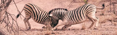 Le zebre maschio controllano harem di femmine e lottano contro gli altri maschi che cercano di accoppiarsi con loro. Queste lotte possono essere violente, con i maschi che si mordono a vicenda al collo e alla testa. Il video seguente mostra due stalloni che lottano per il controllo di un harem. Notare come cercano di mordere i tendini vitali sulle reciproche zampe posteriori.