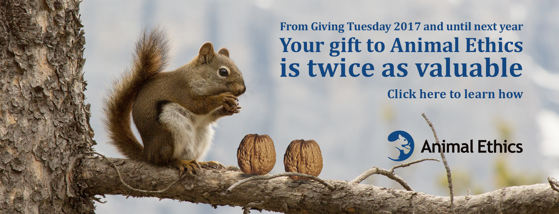 Between now and January 7, 2018, your donation to Animal Ethics will be twice as valuable! Each dollar you donate to us between now and then will be matched dollar for dollar. This means you can help us to be twice as effective! If you donate $5 to us, we’ll receive $10, if you donate $100, we’ll receive $200 and so on. A donor has pledged to double all donations to Animal Ethics up to $25,000.