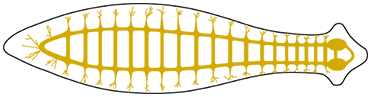 Eles têm um sistema nervoso centralizado com um cérebro distinto localizado na cabeça. Este cérebro recebe e integra informações de estruturas sensoriais em todo o corpo.
